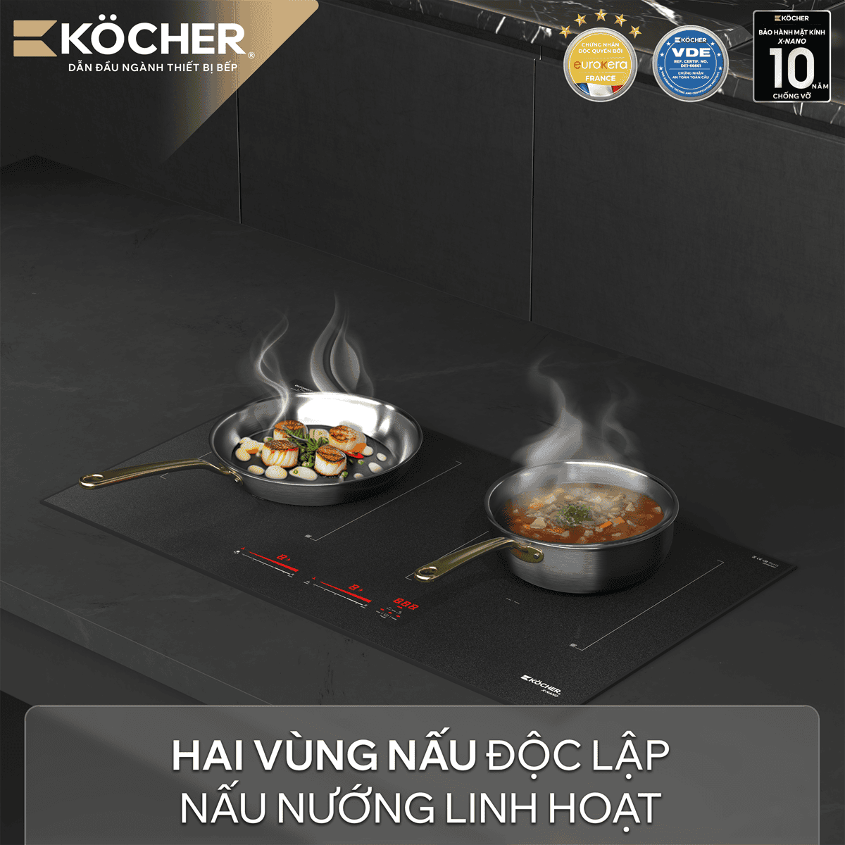 Nếu bạn đang tìm một chiếc bếp từ đôi cho căn bếp hiện đại – vừa đáp ứng yếu tố thẩm mỹ, vừa có hiệu suất mạnh mẽ, đồng thời đặt ưu tiên về an toàn & vệ sinh dễ dàng, thì Kocher X-NANO 8 PLUS xứng đáng là lựa chọn đáng cân nhắc. Với công nghệ mặt kính chống xước cao cấp, thiết kế sang trọng và nhiều tính năng thông minh, sản phẩm này sẽ giúp bạn: