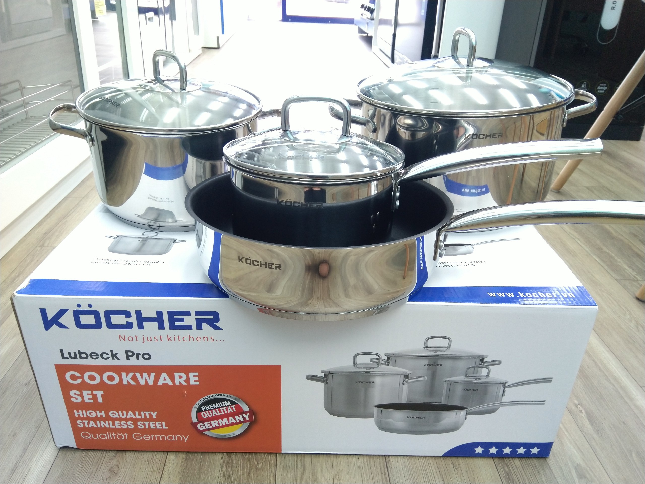 - Bộ nồi 5 món Kocher Lubeck Pro phù hợp dùng cho tất cả các loại bếp đặc biệt là bếp từ.Tuy nhiên, không sử dụng nồi cho lò vi sóng.