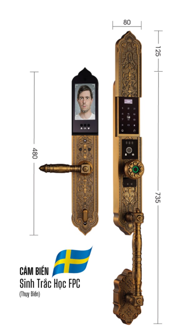 Vân tay: Sử dụng công nghệ sinh trắc học FPC từ Thụy Điển, đảm bảo độ chính xác và bảo mật cao. Khóa chỉ nhận diện vân tay sống, chống làm giả hiệu quả.