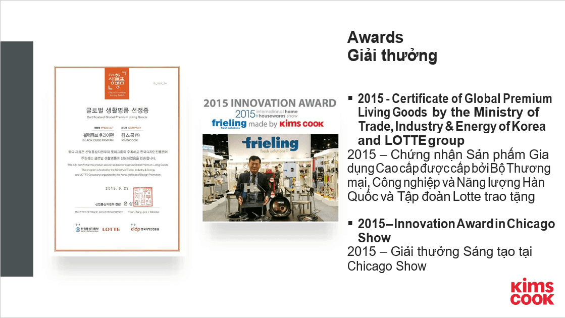 Thương hiệu nồi chảo Kims Cook được thành lập từ 1979 và có trụ sở chính tại Hàn Quốc, nhà máy sản xuất tại Việt Nam có quy mô 20,000 mét vuông. Kims Cook nổi tiếng với các dòng sản phẩm: chảo Noon Song Kims Cook, chảo Blackcube Kims Cook, nồi Noon Song Kims Cook... Với công nghệ Blackcube đặc biệt chống trầy xước.