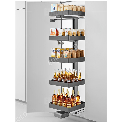 Thiết kế 5 tầng giúp tối ưu không gian lưu trữ cho gia vị, thực phẩm khô và các vật dụng nhà bếp. Mọi thứ được sắp xếp ngăn nắp, dễ dàng lấy ra hoặc cất vào nhanh chóng.